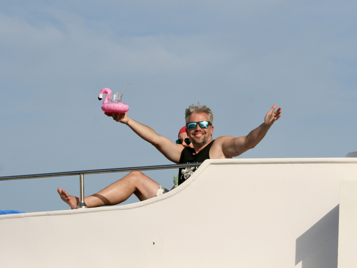 - Check-in/out: The dates of the overnight stay plan serve as orientation for arrival/departure on Saturdays. You can also plan your stay independently – shorter, longer and flexible in terms of arrival or departure. We offer you either a transfer by the daily boat or Zodiac if the Legends is already anchored at the spot at your arrival time. The only fixed point is that the Legends returns to the marina on Friday evening and returns to the spot on Sunday for the overnight stay. If the Legends stays in the marina on Saturdays, you can go on a day trip with the Kite Adventure to Soma Bay for kitesurfing or wingfoiling.