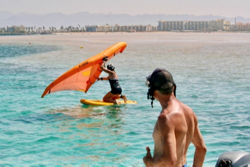 It starts in the morning between 8 and 8:15 o’clock: Every day we drive you from the center to the kite and wing spot in Soma Bay. The half-hour drive takes you along the coast - with a bit of luck you might even see a dolphin. If you are not in Safaga, we will pick you up with a transfer boat from one of the surrounding marinas.